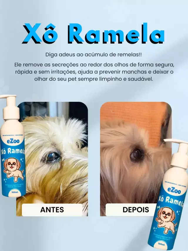 Xô Ramela foi feito pra isso!! Limpa com delicadeza, reduz as manchas escuras e cuida da região dos olhos com segurança, porque seu pet merece um olhar limpo, leve e saudável!!
